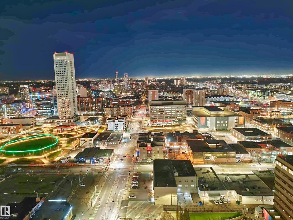 Experience elevated urban living in this modern 2-bedroom, 2-bathroom residence perched high on the 25th floor in the heart of Downtown Edmonton. Designed for comfort and sophistication, this home showcases breathtaking skyline views from every room — day or night. Step inside and be impressed by the high-end finishes throughout. The open-concept living area features premium vinyl flooring (no carpet), sleek quartz countertops, and full-size stainless steel appliances that blend functionality with luxury. Each bedroom offers independent air conditioning, ensuring personalized comfort year-round. Built in a solid concrete structure, this building is known for its exceptional durability, quiet interiors, and long-lasting quality — a rare find in downtown living. Enjoy the convenience of low condo fees that include access to top-notch amenities, making this property ideal for both professionals and investors seeking value without compromise.
